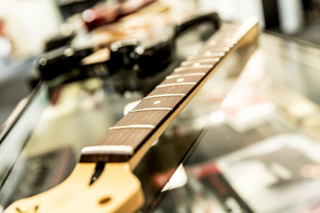 Was wir anbieten: - Saitenwechsel - Griffbrett reinigen & ölen - Hals richten / Saitenlage anpassen - Mechanik nachstellen oder wechseln - Intonation- & Saitenradius einstellen - Neubundierung & Bünde bearbeiten - Elektronik revidieren - Pickups verlöten - Kopf- & Halsbrüche leimen - Lackierungen - Restaurierung - Sonderanfertigungen